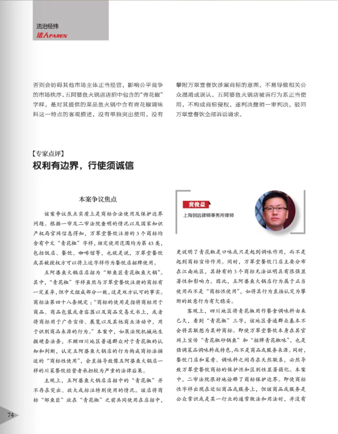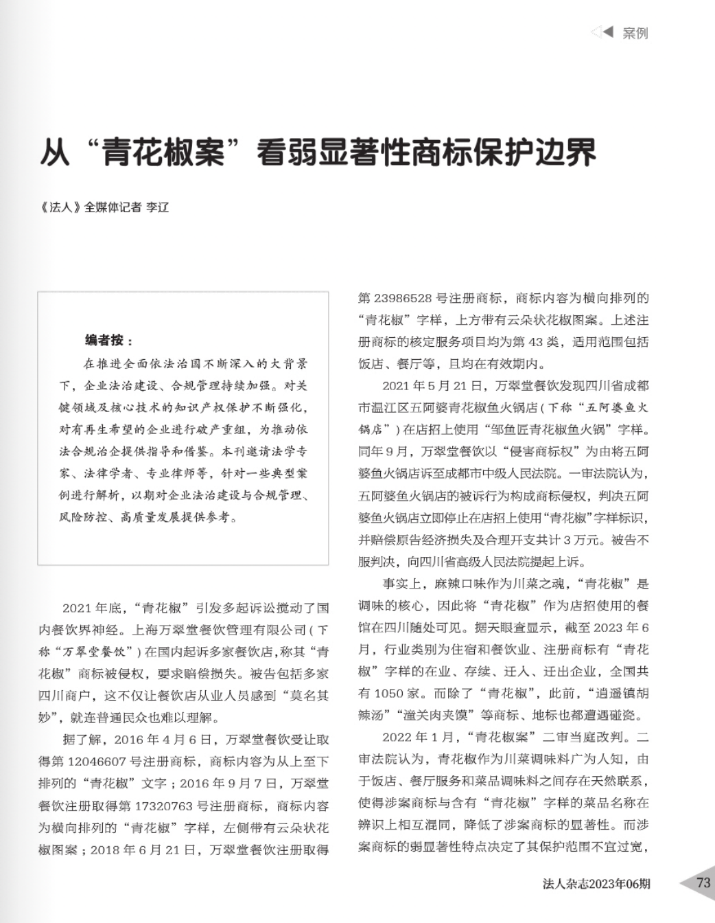 广州辉知简讯 | 辉知队黄俊益律师应“法治日报”旗下杂志邀请,就“青花椒”案发表专家点评