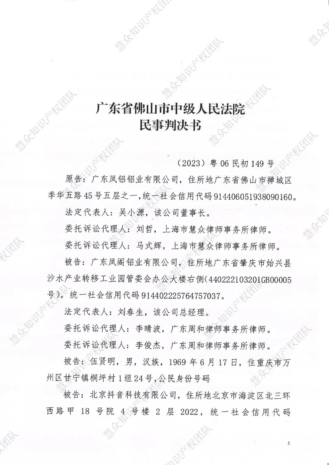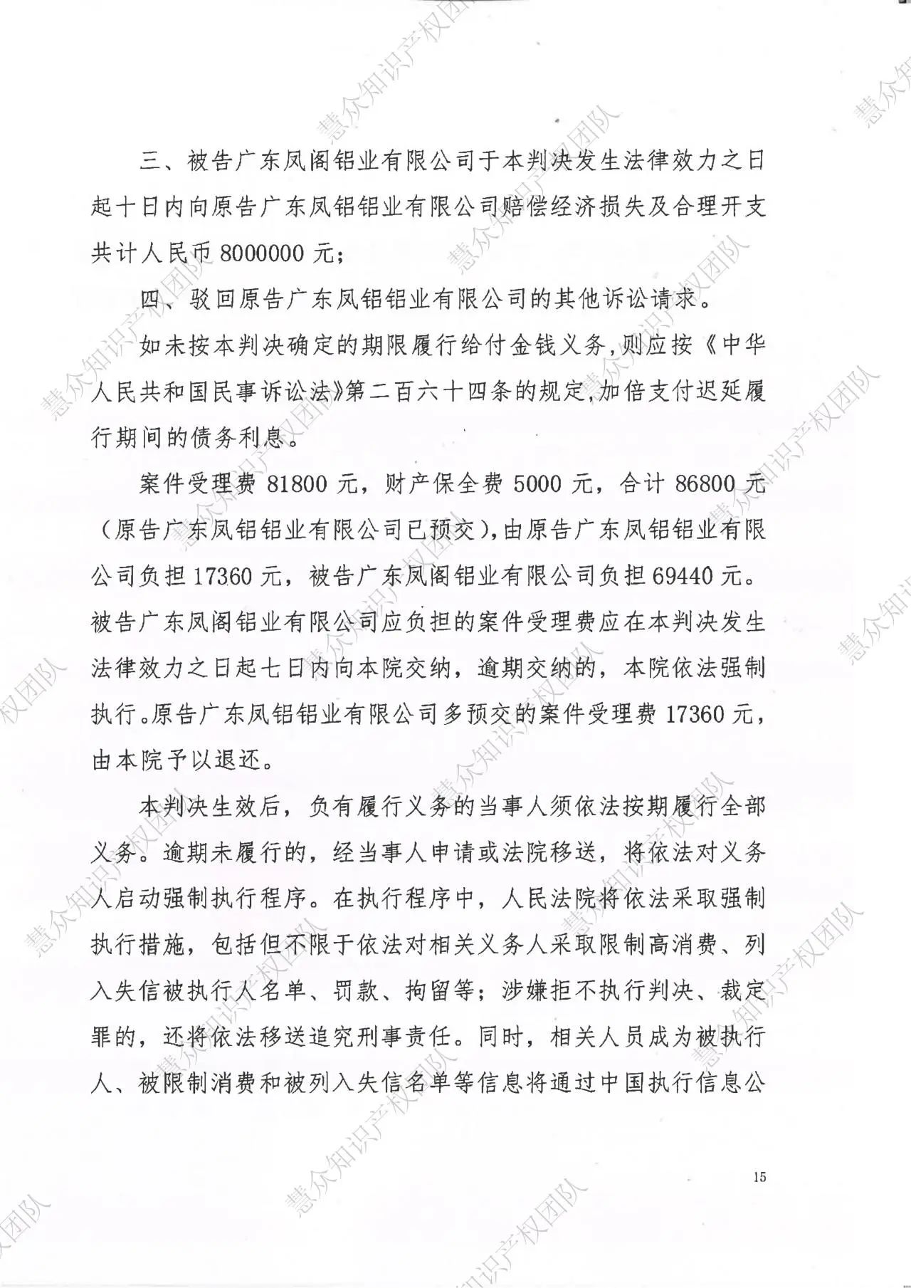 广州判赔800万!辉知队代理“凤铝”商标维权案胜诉